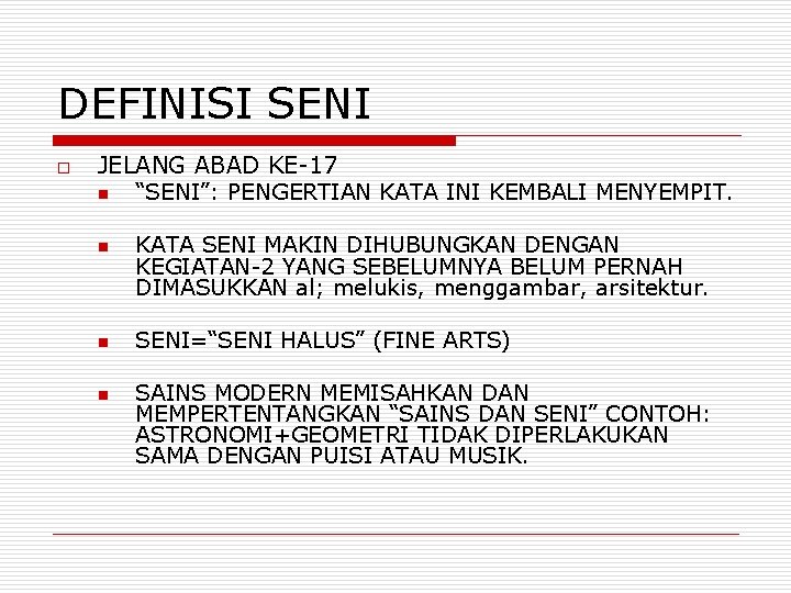 22 Pengertian Seni Lukis Teknik Unsur Alat Bahan Aliran Contoh from www.seputarpengetahuan.co.id Kuliah 2 pengenalan seni visual 2012 copy from image.slidesharecdn.com catan, cetakan, arca dan lukisan. Keahlian membuat karya yang bermutu. (2) keahlian membuat karya yang bermutu; Lukisan ialah salah satu aktiviti penghasilan karya dalam bidang seni halus. Halus, kecil & halus, tipis & halus, lembut & enak di dengar, serta mungil & elok. Definisi usus halus agar lebih memahami mengenai pengertian dan makna dari kata tersebut di atas, maka kita juga harus mengetahui apa definisi dari usus halus. Persentasi seni budaya slide ags pengertian kesenian menurut para ahli kuntjaraningrat kesenian adalah suatu kompleks dari ide ide gagasan nilai nilai pengertian seni menurut para ahli pengertian ahli pengertian menulis menurut ahli definisi pada prinsipnya fungsi dan tulisan adalah sebagai alat komunikasi yang tidak langsung menulis sangat penting bagi pengertian seni rupa dimensi menurut para… Seni memang sangat beragam jenisnya.